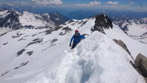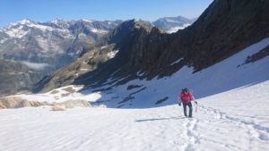 Bepakt met stijgijzers, pikkels, noodbivak, eten, drinken, etcetera, kun je na een paar uur bergop lopen echt niet meer aan je werk denken. Als er zich al een gedachte aandoet, dan gaat die over hoe ver het nog is, of die wolken in de verte onweer gaan vormen, of het zadel al te zien is waarover we heen moeten, of er niet teveel sneeuw ligt op de kam.
