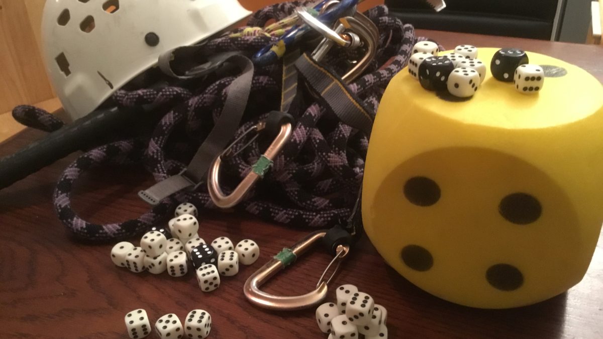 Helm, valse dobbelstenen, klimtouw… alleen nog een fles cola kopen, dan heb ik alles! Wat ik daar mee ga doen…?