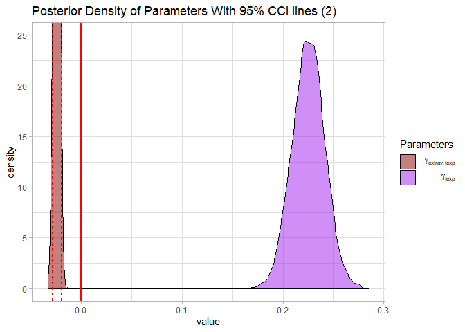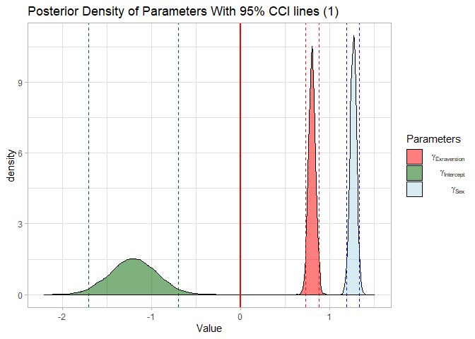 labs(title = "Posterior Density of Parameters With 95% CCI lines (2)")