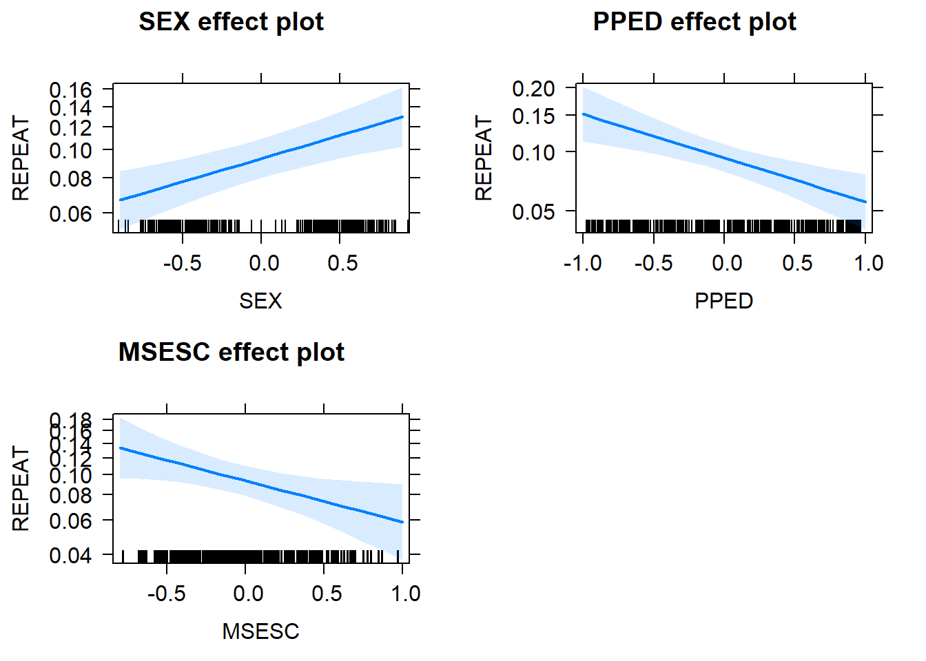 ## Model_Multi_Full_No_SEX: REPEAT ~ SEX + PPED + MSESC + (1 + PPED | SCHOOLID)