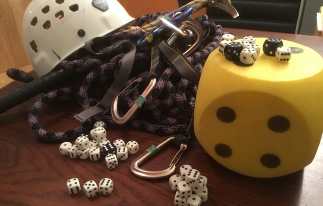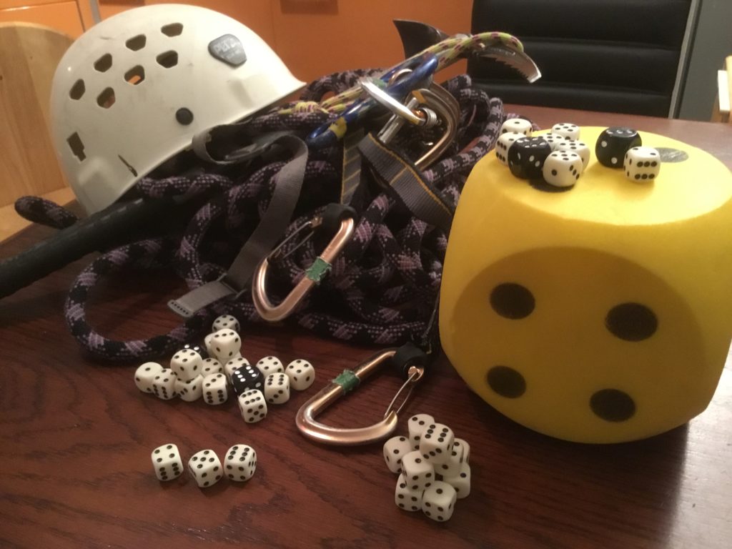 Helm, valse dobbelstenen, klimtouw… alleen nog een fles cola kopen, dan heb ik alles! Wat ik daar mee ga doen…? Morgen geef ik een college “Wetenschap, dat kan ik ook!” voor alle leerlingen VWO5 van het Huygens Lyceum in Eindhoven. Bij de Jonge Akademie organiseren…