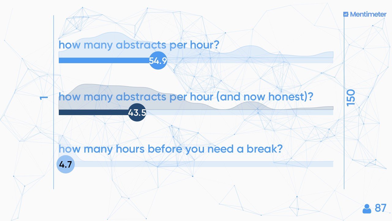 The participants are looking forward to today, some just like penguins… Then we asked them how many abstracts they could screen per hour and how many hours can you screen non-stop?