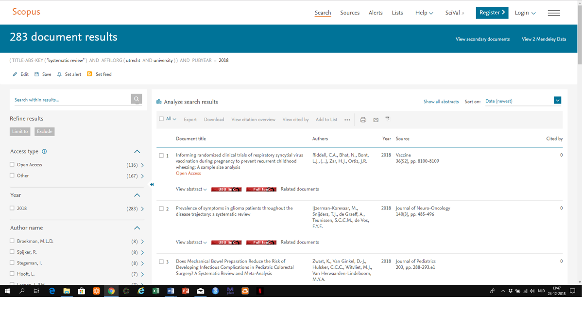 Scopus search of researchers working at Utrecht University who published with ‘systematic review’ in the title.