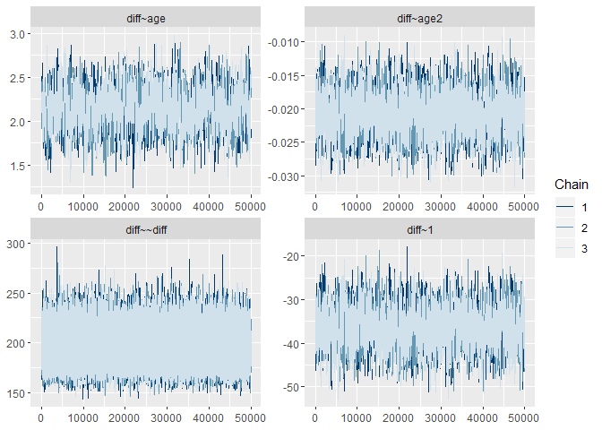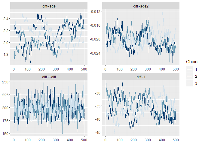 diff ~~ diff # if you dont specify the prior it will use the default prior.
